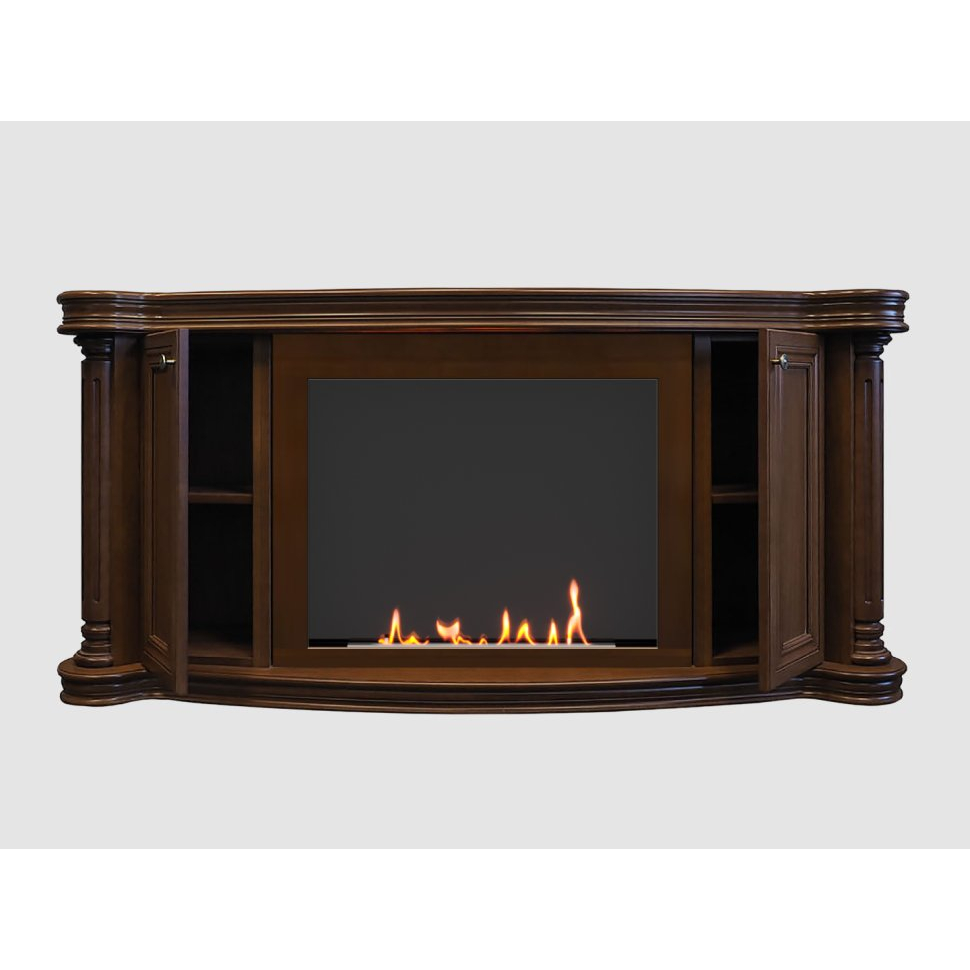 Портал для такого биокамина изготавливают из МДФ. Этот материал идеально имитирует натуральное дерево, он легок по весу и устойчив к выгоранию на солнце.