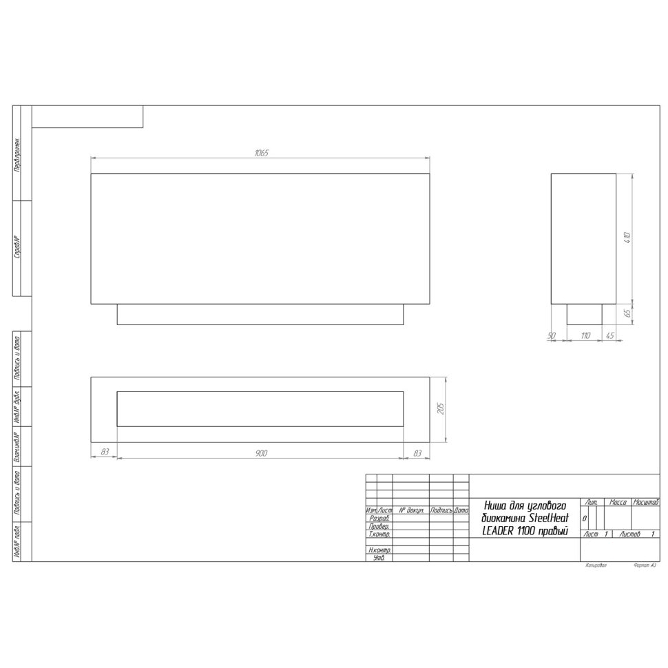 Биокамин угловой SteelHeat LEADER 1100 правый предназначен для встраивания в ниши из гипсокартона, кирпича, пеноблоков, бетона или в мебель. При установке биокаминов в мебель необходимо встраиваемую часть очага покрыть теплоизоляционным материалом!