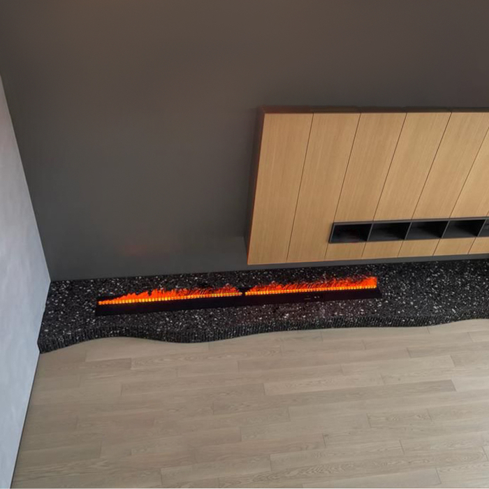 Электрический очаг Schones Feuer 3D FireLine 3000 создаст ощущение присутствия в доме настоящего камина. Реалистичное пламя образуется при проецировании лучей на пару. Такая имитация огня имеет довольно высокую степень схожести с реальным пламенем и является полностью безопасной для окружающих, а испаряющаяся вода, повышает влажность воздуха, создает комфортный микроклимат. Электрокамин оснащен сенсорным дисплеем при помощи которого производится управление всеми функциями устройства. Так же для управления основными функциями, камин комплектуется пультом дистанционно управления, работающим на частоте 433,92 Мгц. Очаг может быть встроен в нишу в стене, установлен в виде островной конструкции, а также смонтирован в мебельные элементы.