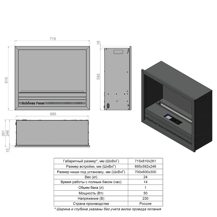 ✓ Встраиваемый размер (ШхВхГ): 695x592x300